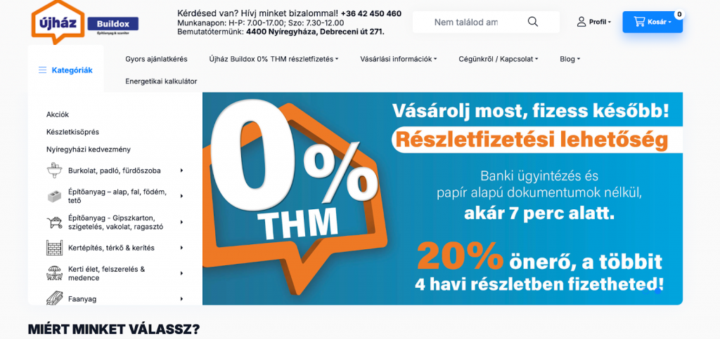 A részletfizetés nem csak a már említett üzleti hatásokkal képes segíteni a kereskedőt, hanem a marketing területén is számos előnnyel jár. A Buildox ezt nagyon hamar felismerte, és kiemelkedő módon implementálta a kommunikációs eszközei közé.