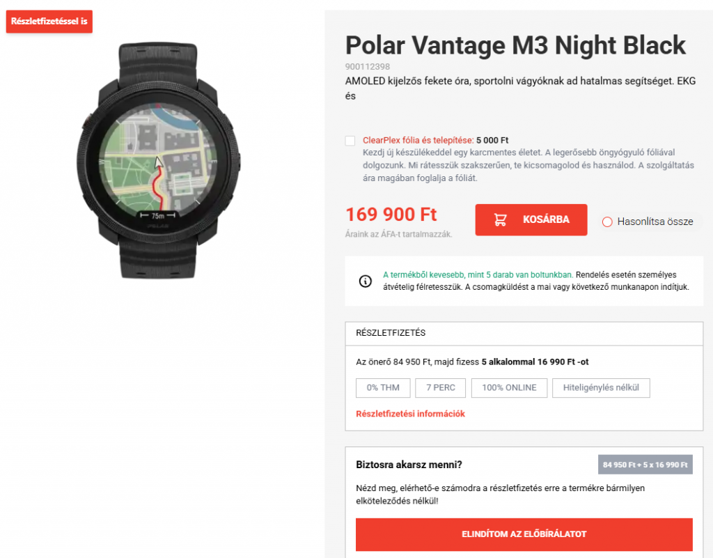 A termékoldal az egyik legfontosabb érintkezési pont a vásárlóval, hiszen itt hozza meg a döntését a termék megvásárlásáról. Ezért kulcsfontosságú, hogy itt is jól látható helyen jelenjen meg a részletfizetés lehetősége. Az API integrációnak köszönhetően egy információs doboz jelenhet meg a termékoldalon, amely tájékoztatja a vásárlót az elérhető konstrukciókról.