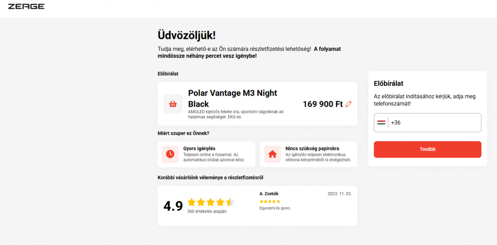 Nézd meg a Zerge részletfizetés landoló oldalát itt.