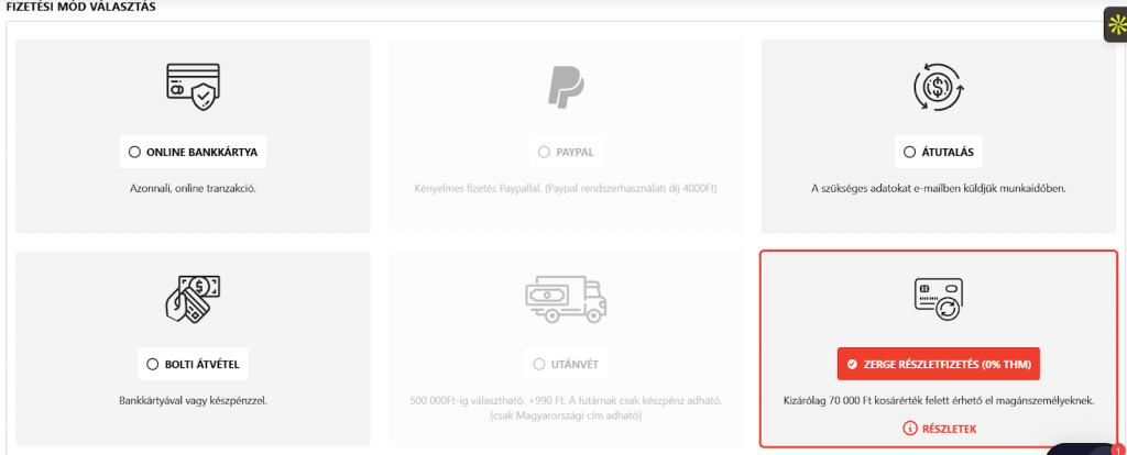 Előfordulhat, hogy egy vásárló olyan terméket választ, amely önmagában nem éri el a részletfizetés minimális összeghatárát. Ilyen esetekben a részletfizetés nemcsak egy kényelmi funkció, hanem a kosárérték növelésének eszköze is lehet.